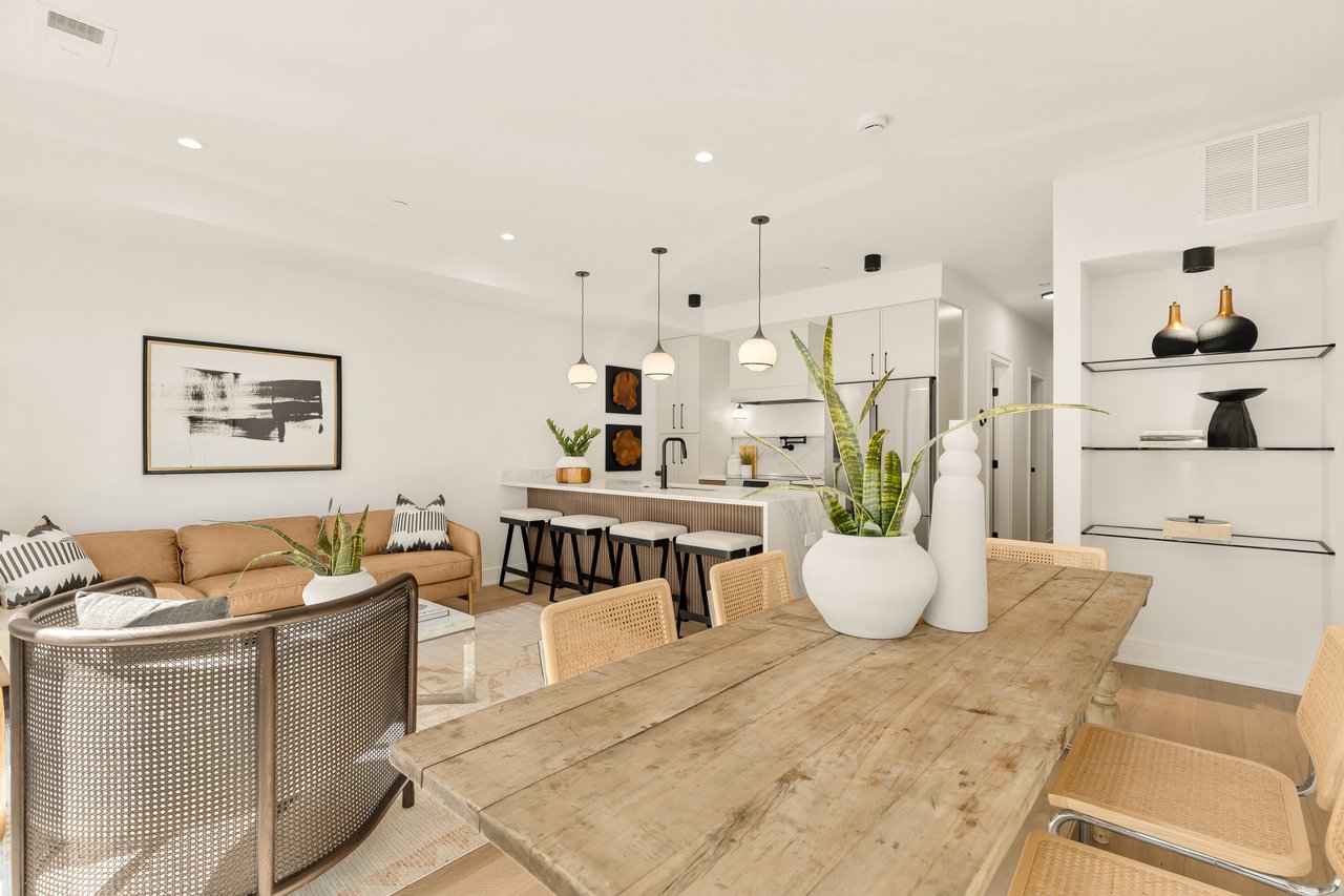Inside each residence, open-concept layouts and expansive windows fill the space with natural light. Wide-plank white oak flooring, solid-core doors, and clean architectural lines create a refined, modern aesthetic throughout.